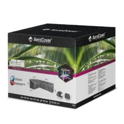 AeroCover loungesethoes. Ademende loungesethoes rechthoek voor loungesets 300x250xH70. O.a. geschikt voor loungesets met meerdere elementen, hoeksets met hoge tafel of L-vorming hoeksets welke tegen elkaar aan worden geschoven. AeroCovers zijn ademend, waterbestendig, reduceren condensvorming en gaan schimmelvorming tegen. De stof heeft een hoge kleurechtheid dankzij de door en door geverfde vezels. Een AeroCover hoes verlengt de levensduur van uw tuinmeubelen. AeroCovers zijn vervaardigd van sterk en lichtgewicht ripstop polyester. Ze zijn makkelijk hanteerbaar en nemen weinig ruimte in wanneer niet in gebruik. De afdekhoes is voorzien van rijgkoord met 2 stoppers voor een goede pasvorm. Inclusief handige opbergtas. AeroCover stoffen zijn 100% waterdicht, de naden zijn, net als elke ander hoes, spatwaterdicht.