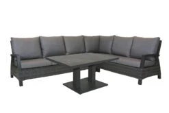 Met deze prachtige hoeklounge uit de LISSABON serie van Royal Seasons kun je eindeloos genieten in de tuin. Het is gemaakt van hoogwaardig wicker met een aluminium frame. Aluminium is licht in gewicht en bovendien erg sterk. Daarom wordt aluminium veel gebruikt in de productie van tuinmeubelen. De hoekbank is inclusief de SOL in hoogte verstelbare tafel. Kortom – een zeer luxe hoeklounge waarmee jij maximaal geniet van jouw tuin!